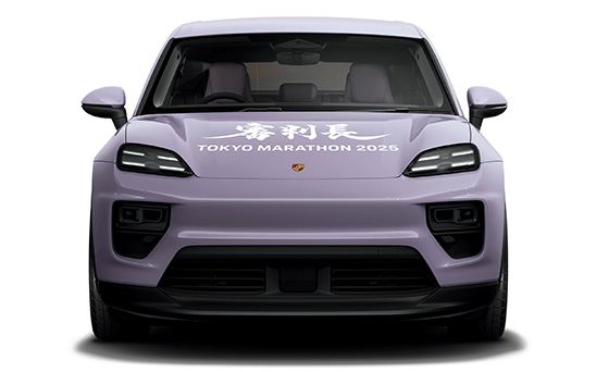 大会オフィシャルカーポルシェのサインを日本の伝統的な芸術である書道により表記します。(技術総務・審判長・先導・全線監察・役員配置)。