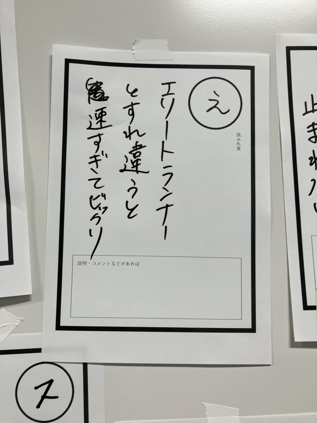 In August 2024, we began calling for submissions from the general public for reading cards to be used in the Tokyo Marathon Karuta. We received roughly 800 idea submissions. All of the ideas were wonderful, and some of them were submissions that you'd really have to be a runner to fully appreciate.